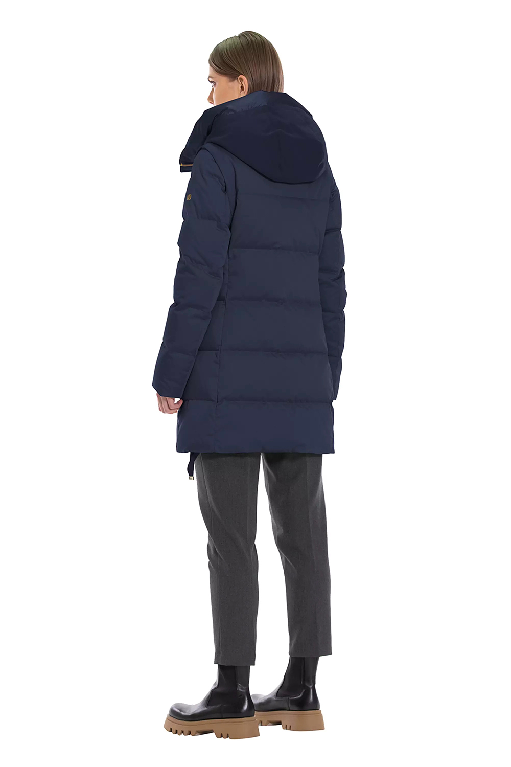 • Composizione: 1°Tessuto: 42%Lana ,40%Rayon, 18%Poliestere . 2° Tessuto 100%Poliestere - Imbottitura:90%Piumino, 10%Piuma