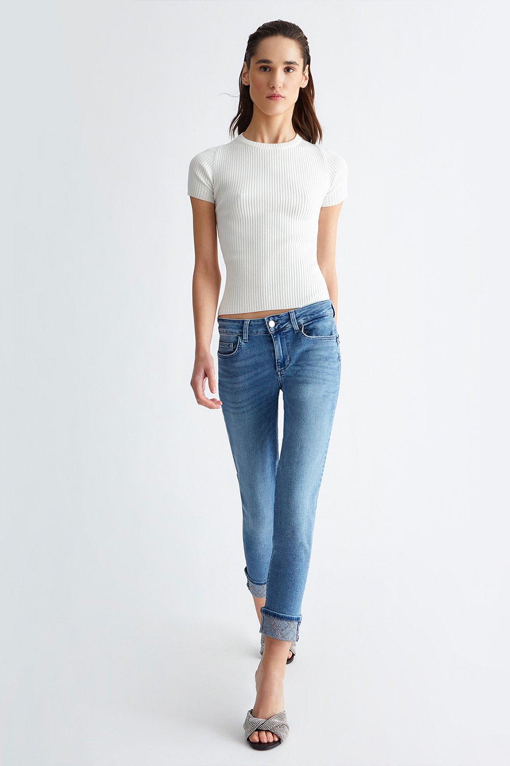 • Risvolto con strass applicati al fondo