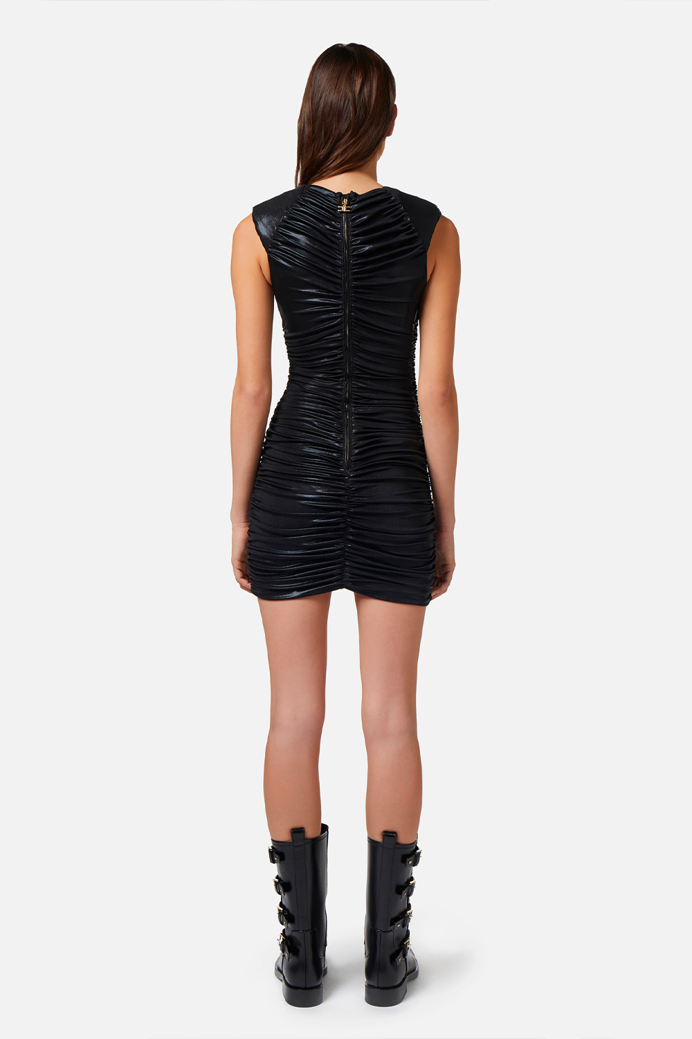 • Zip sulla schiena in metallo dorato