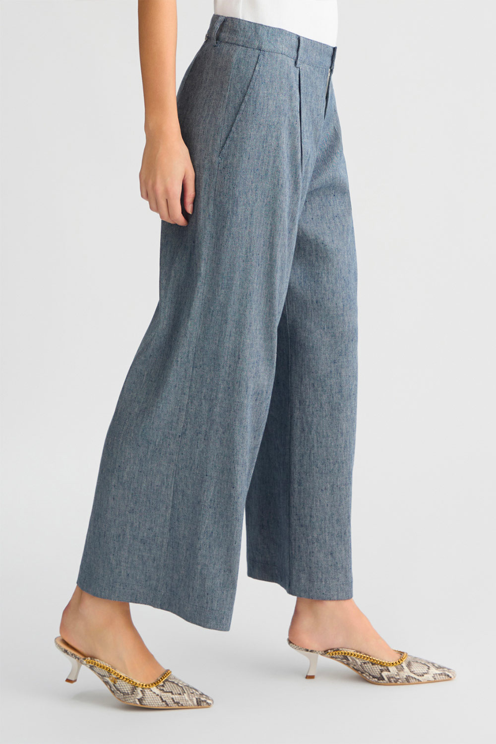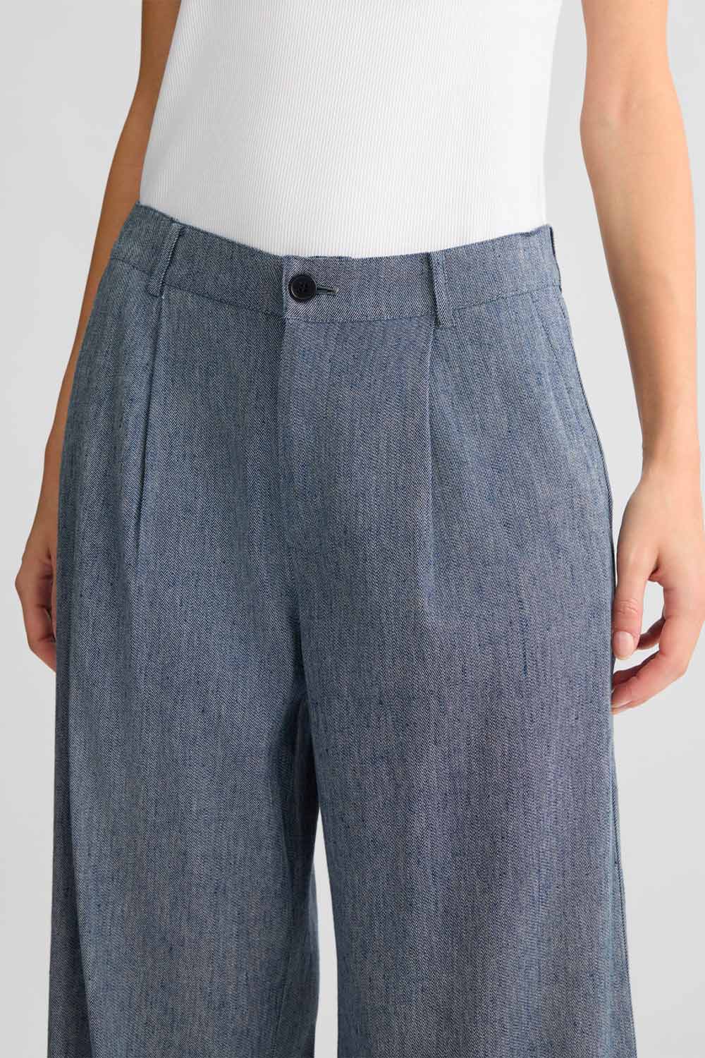 • Denim misto lino stretch