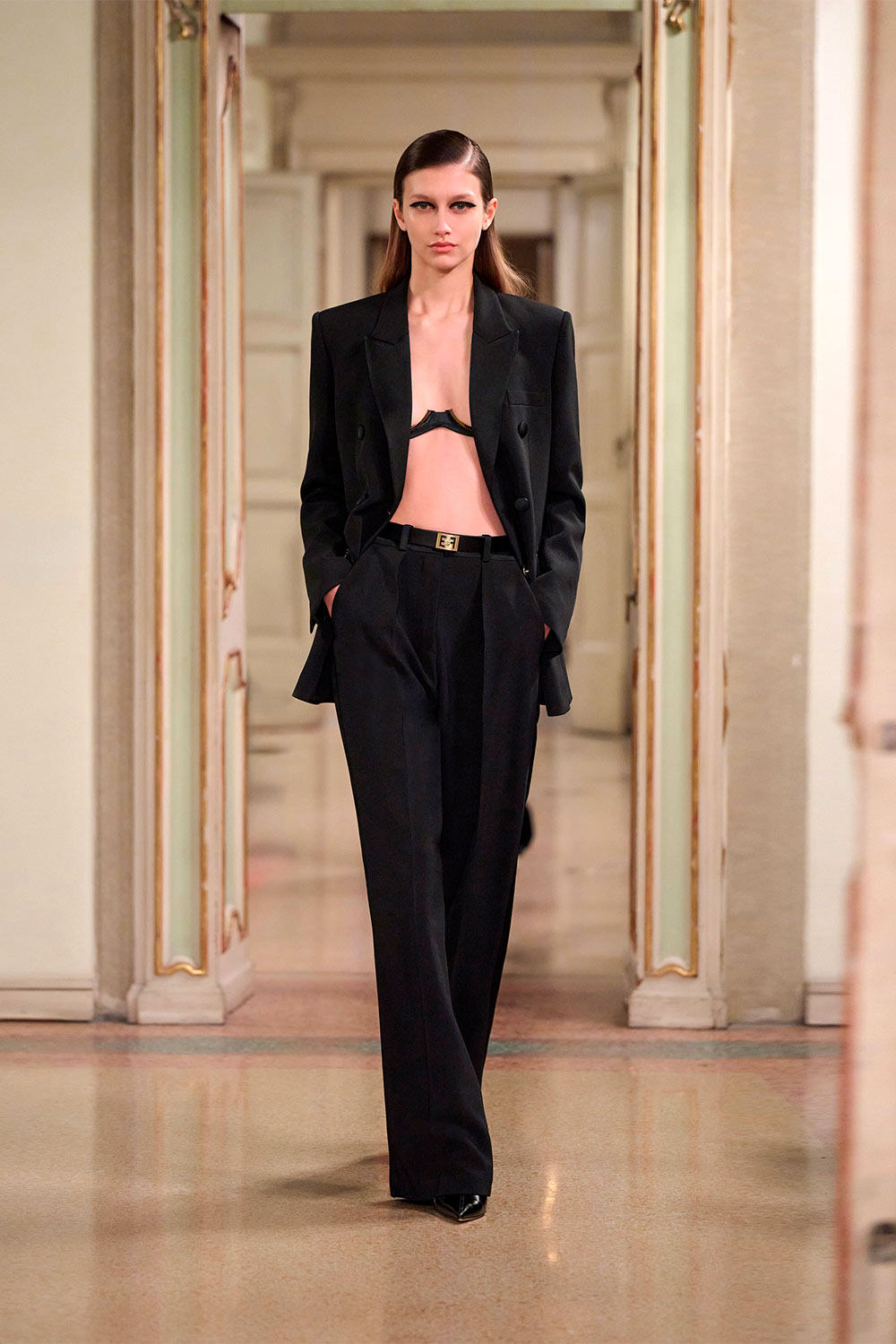 • Fascione e bande laterali in raso e ispirate ai modelli smoking