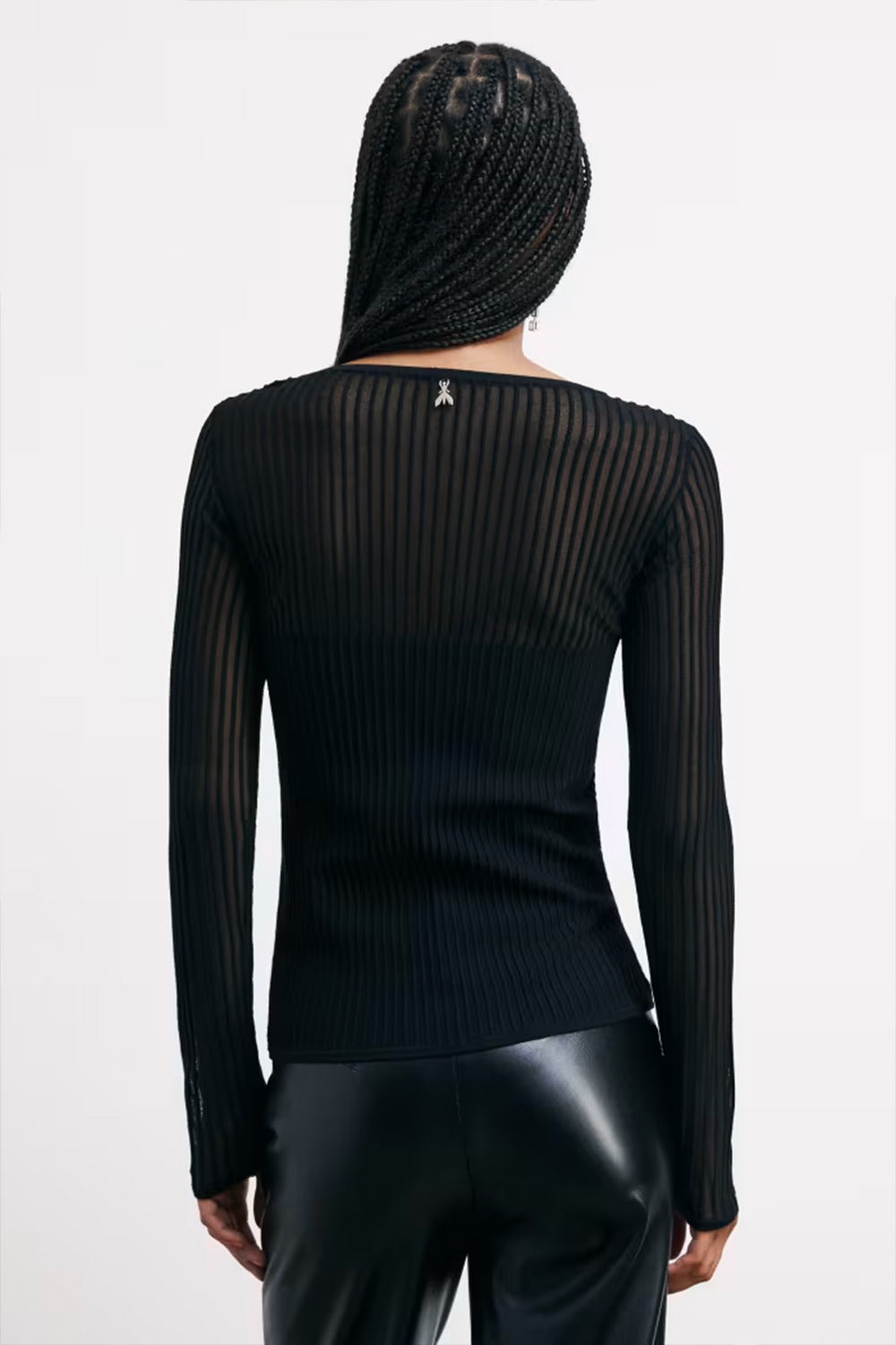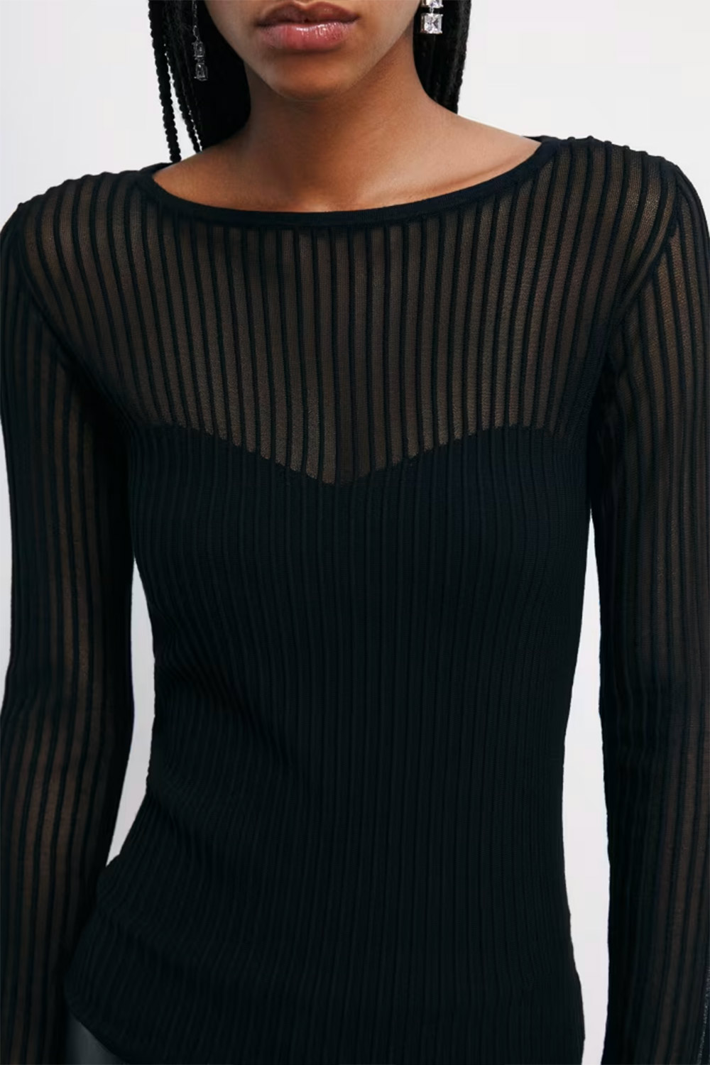 Maglia Aderente a Costine con Dettagli Trasparenti