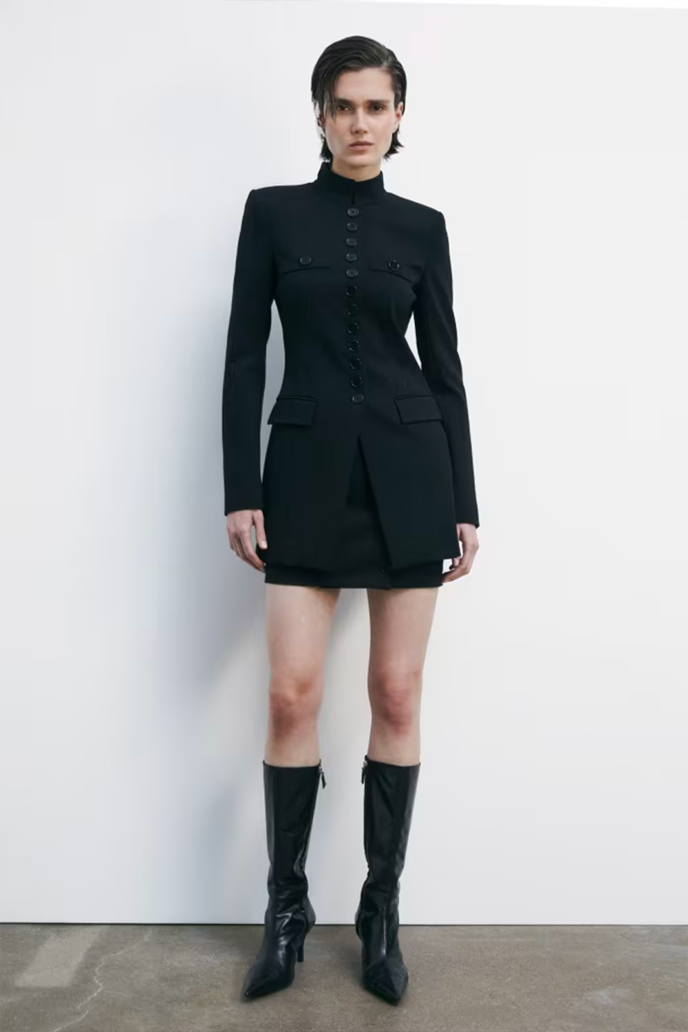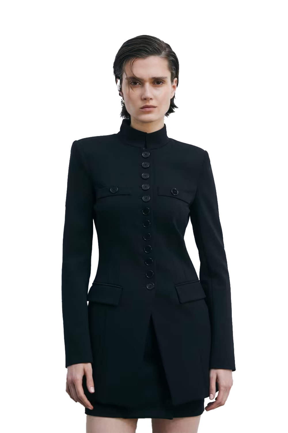 • Punto stoffa elasticizzato, tessuto strutturato e confortevole