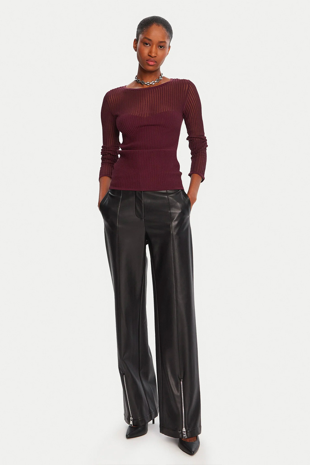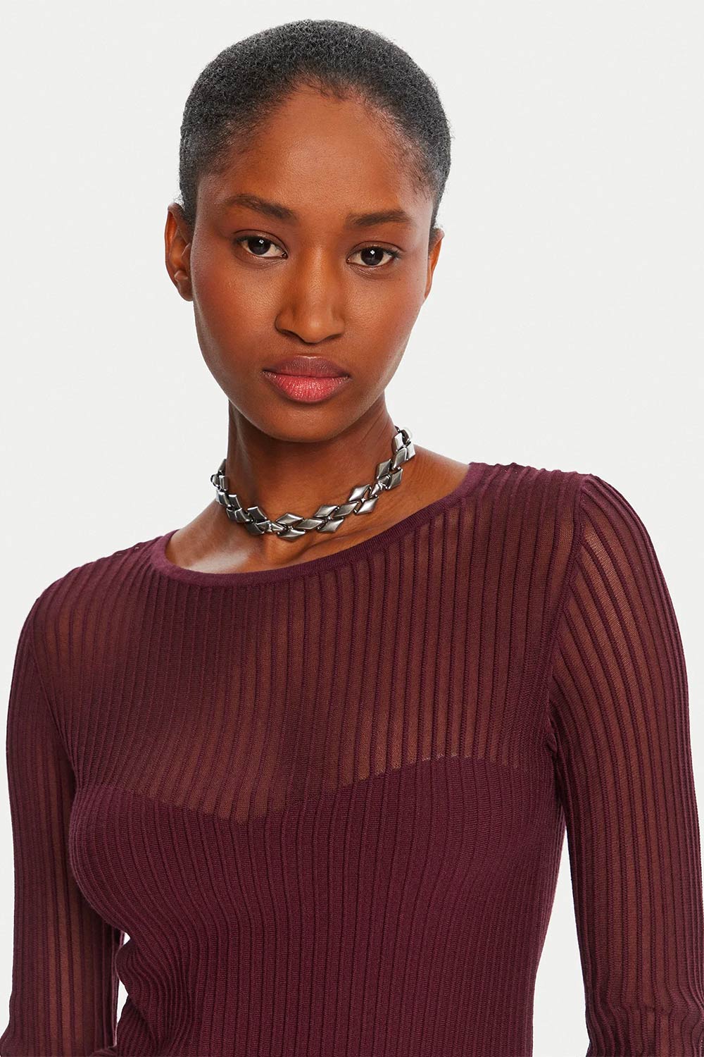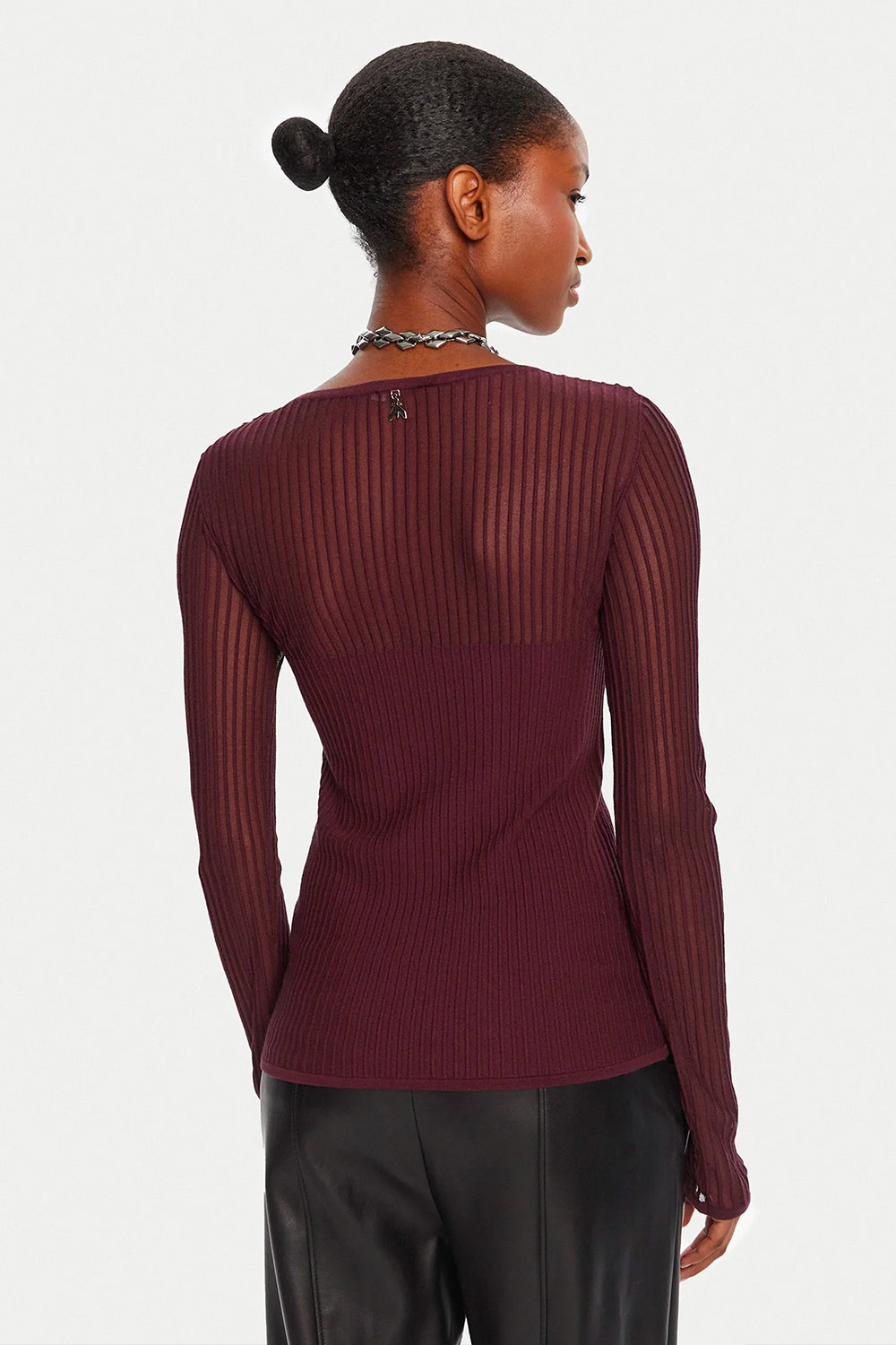 Maglia Aderente a Costine con Dettagli Trasparenti