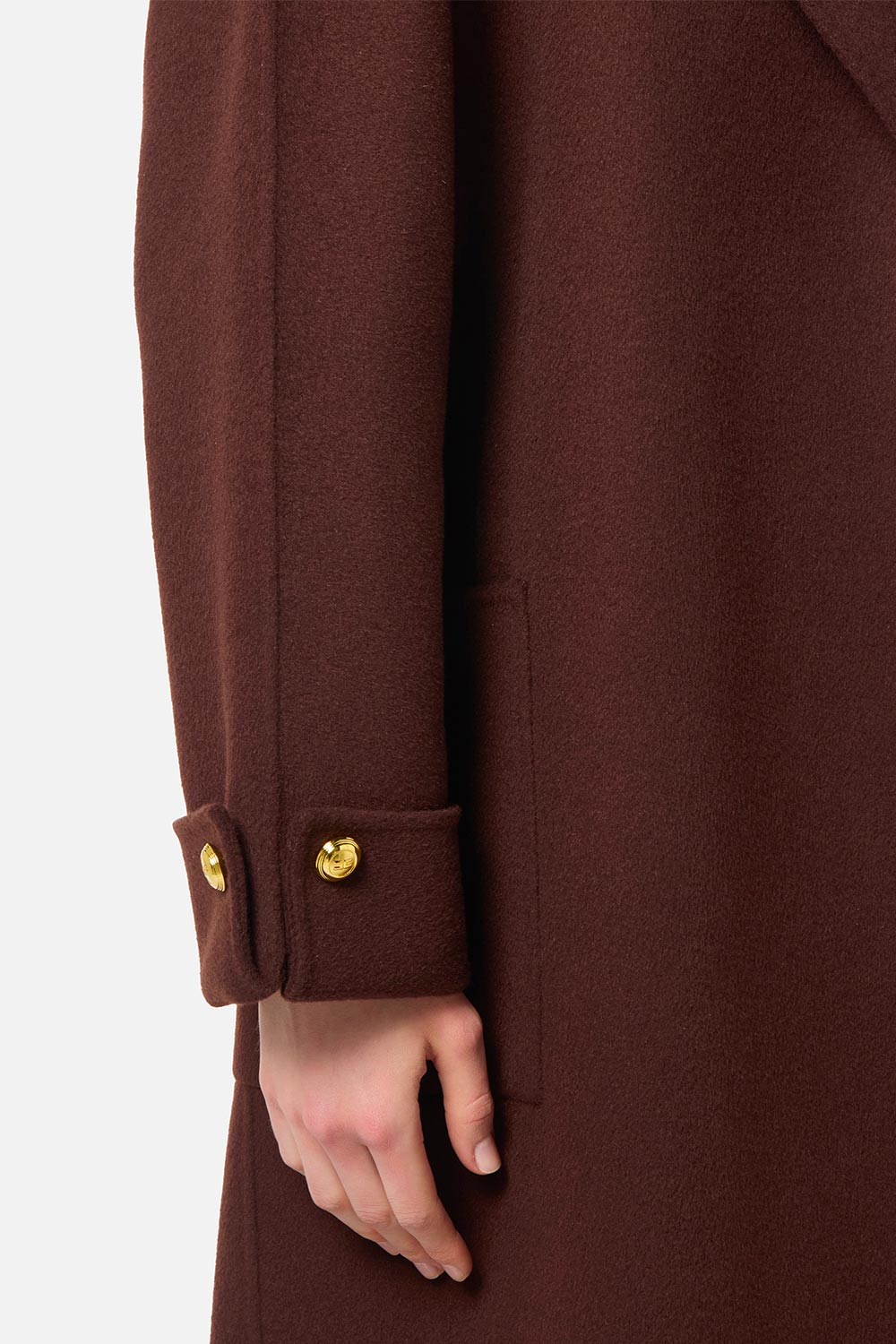 • Bottoni in metallo dorato sui polsi