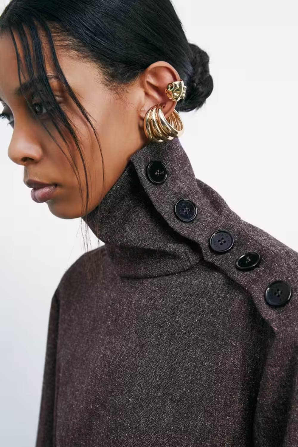 • Maniche lunghe morbide con bottone al fondo